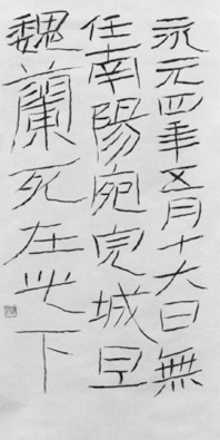 井垣清明の書59臨永元四年魏蘭刑徒甎平成23年(二〇一一年)七月 釈 文永元四年(92年)五月十六日、無任の南陽(河南省南陽郡) |